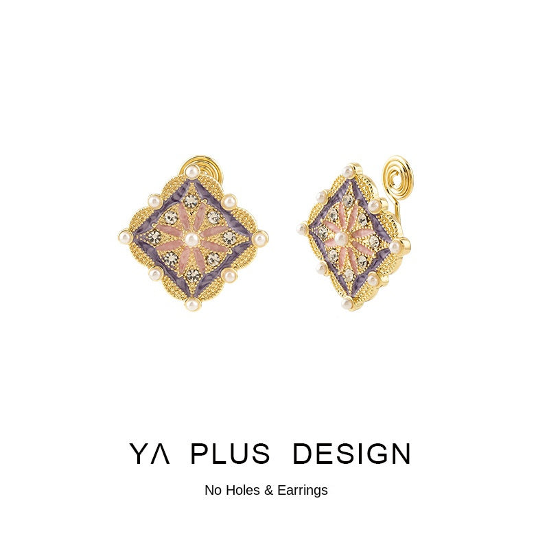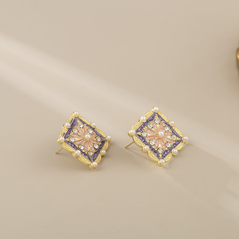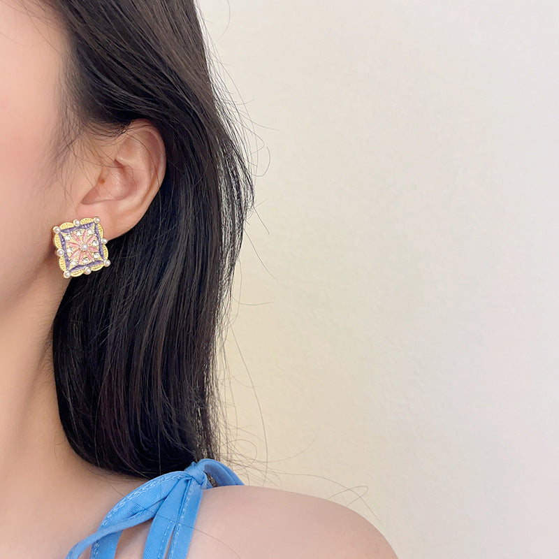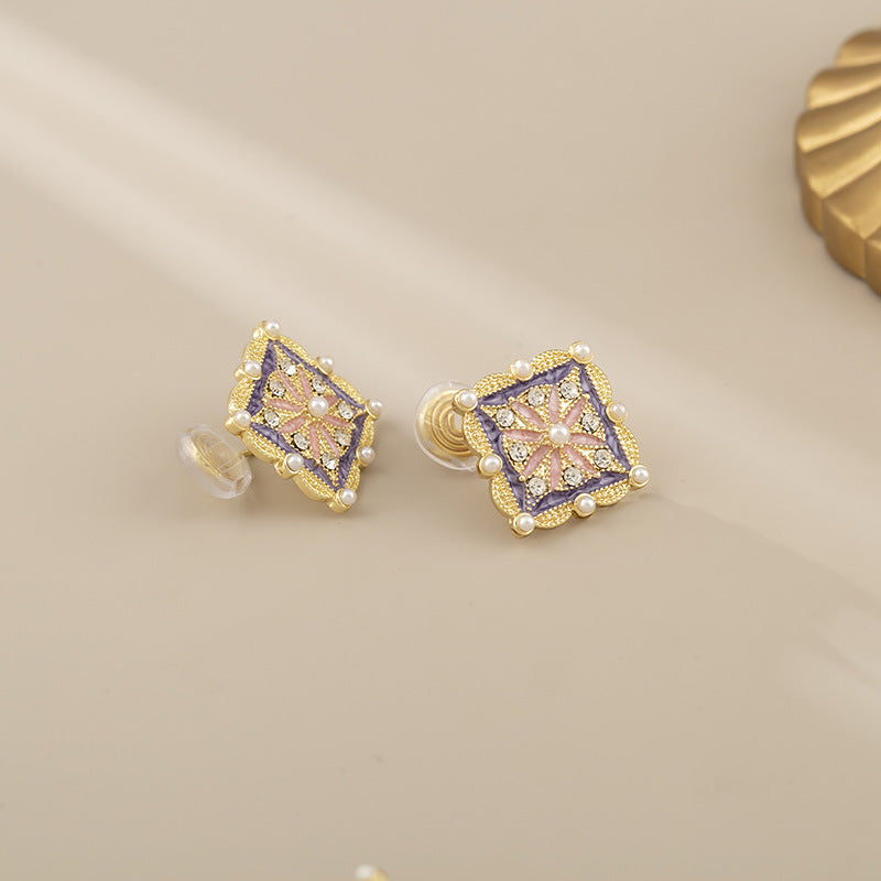 Vintage dworca emaile kwadratowe paznokcie do uszu / klampy do uszu