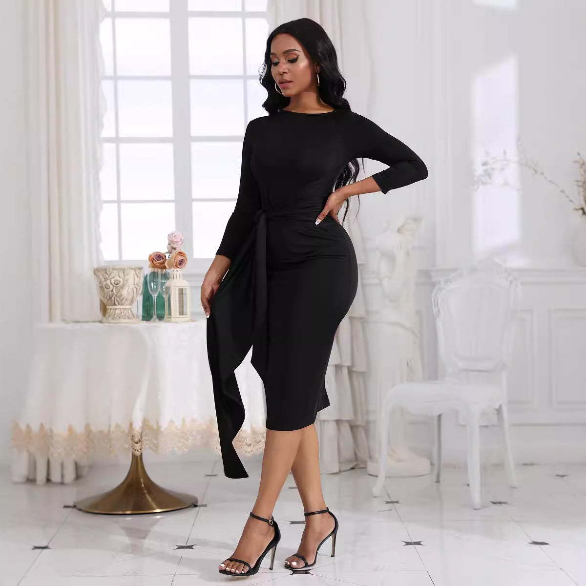 Pakiet zawiera: 1* Elegancką sukienkę midi z węzłem z przodu i rozcięciem dla kobiet