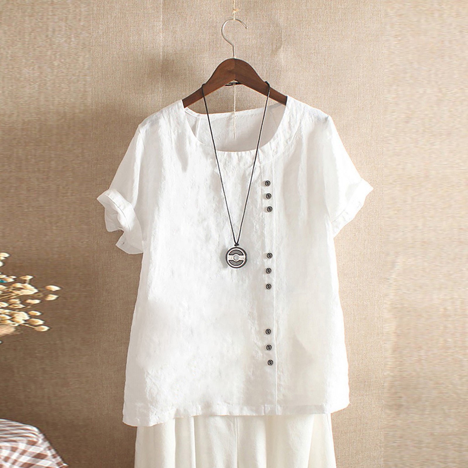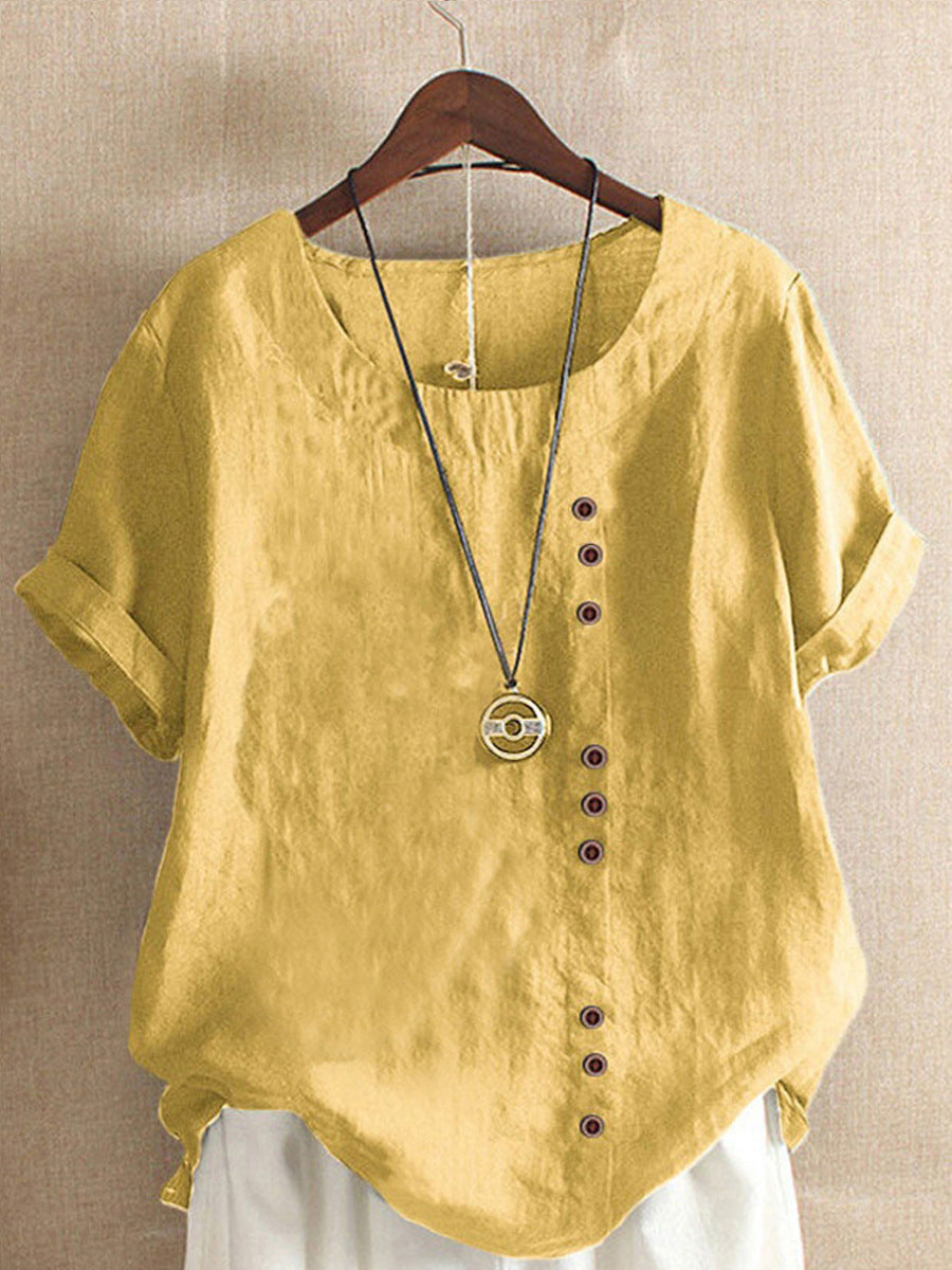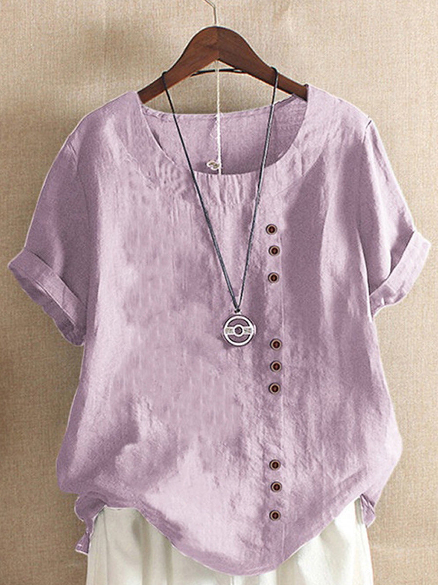 [Lato 2025, nowy styl] Uniwersalny, swobodny T-shirt z bawełny i lnu
