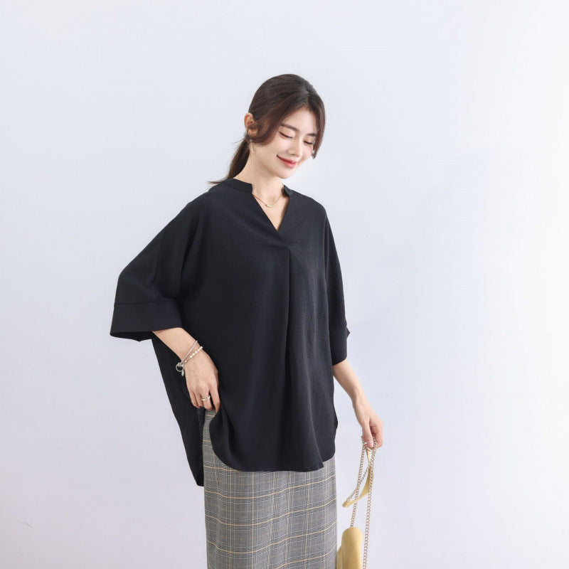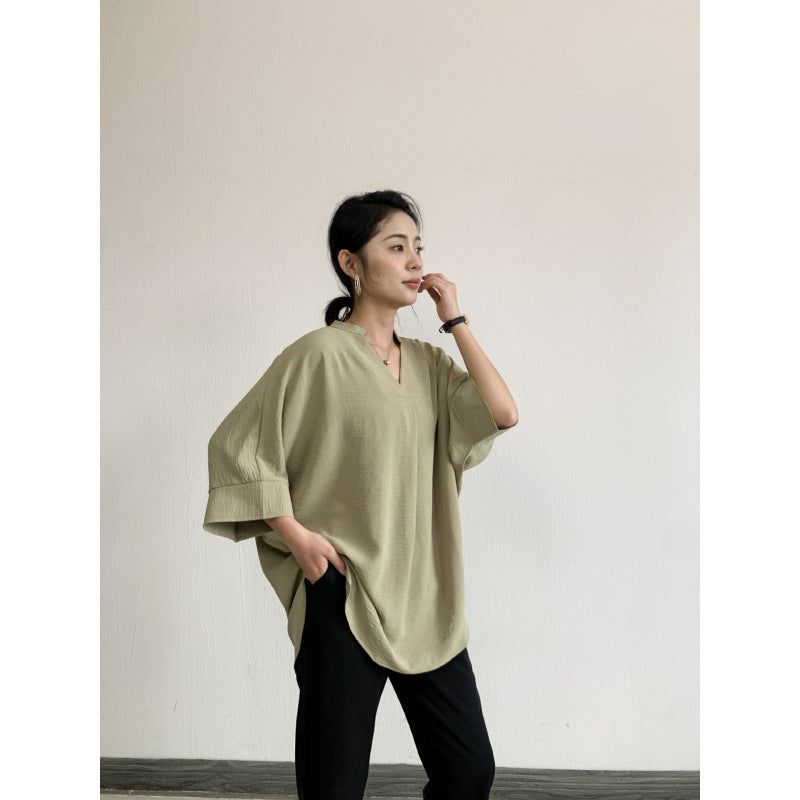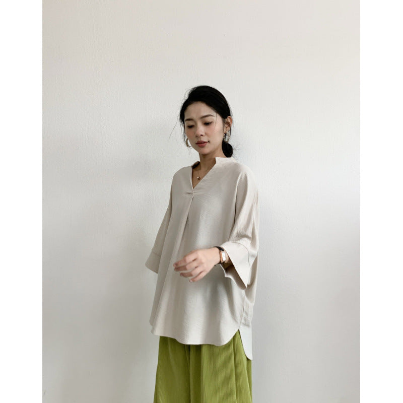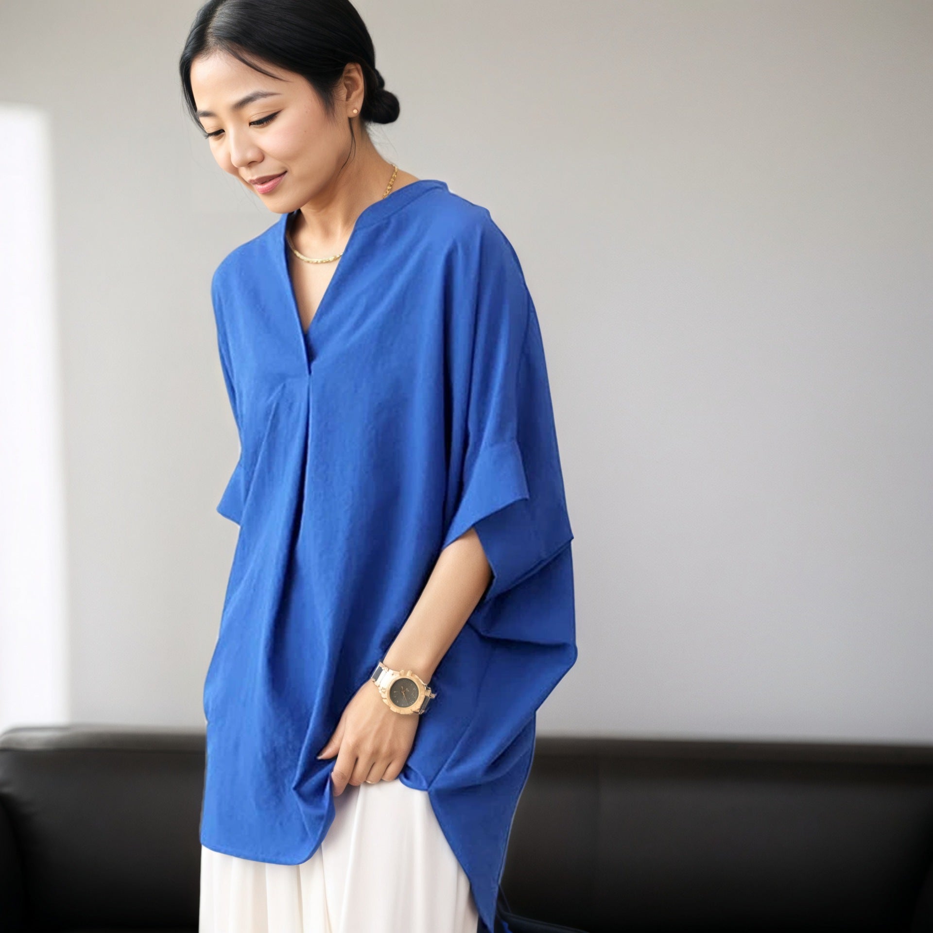 [Nowość letnia] Koszula z dekoltem w serek i rękawami typu nietoperz