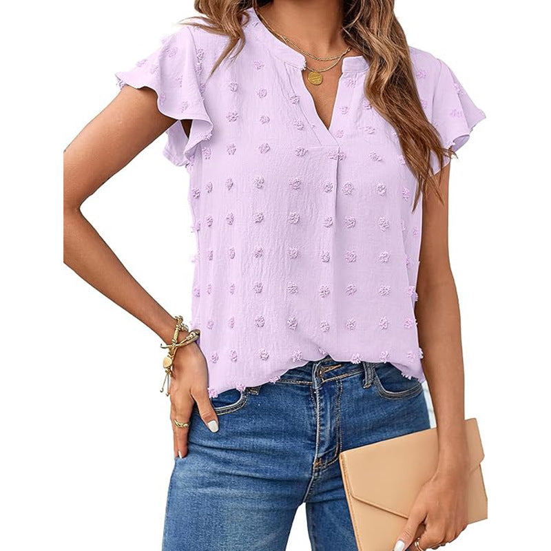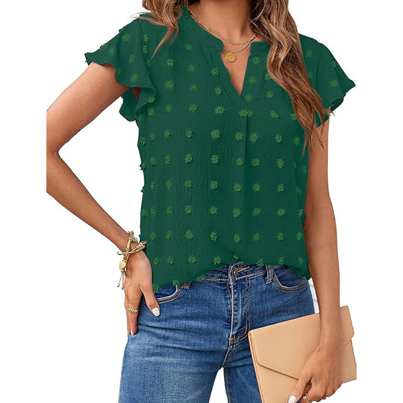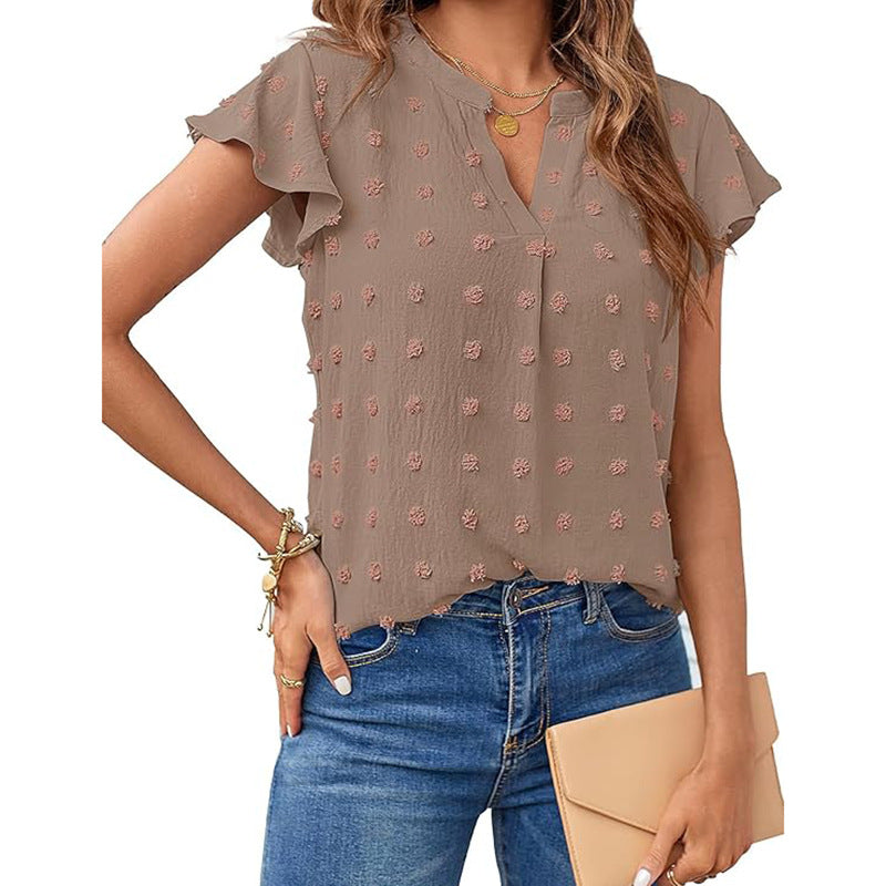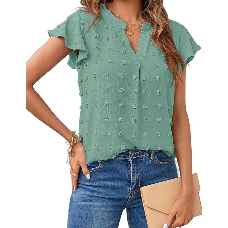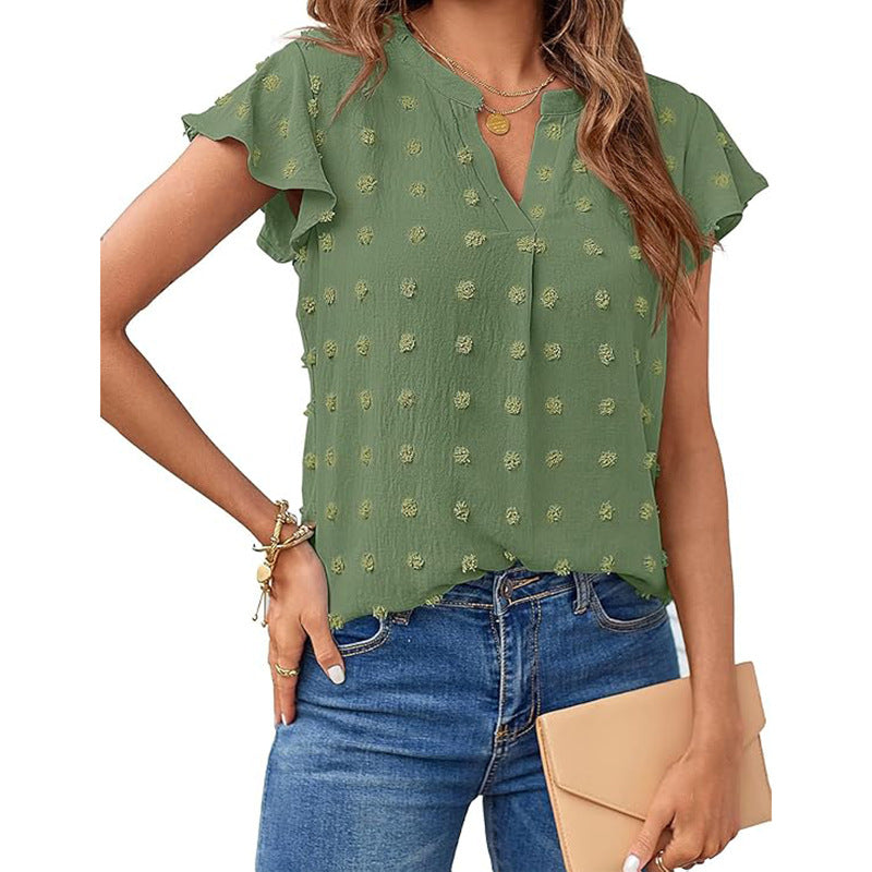 [Nowy styl 2025] Dekolt w serek, krótkie rękawy z motywem liści lotosu